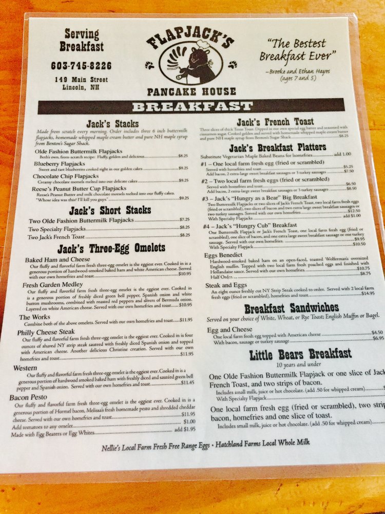 Flapjack's Pancake House Menu